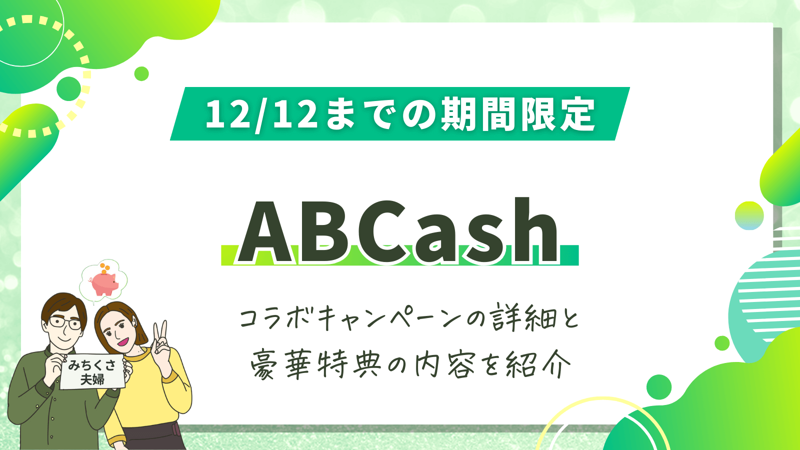 【12月12日までの期間限定】みちくさ夫婦×ABCashのコラボキャンペーンの詳細と無料体験を受けた感想を紹介!>>ここをタップして、みちくさ夫婦×ABCashのコラボキャンペーンの内容を確認する! 本記事で解決できる悩み【文字をタップしたらジャンプできるよ!】 【先着100… -