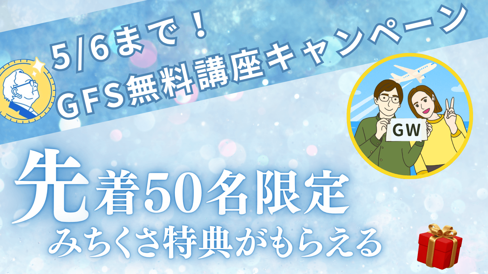 【先着100人の限定特典アリ】キャンペーンの詳細と豪華特典のもらい方を詳しく解説!>>ここをタップして、今すぐ『みちくさ夫婦限定特典の詳細ともらい方』を確認する! >>ここをタップして、今すぐ『春のGFS無料講座(旧バフェッサ)キャンペ… -