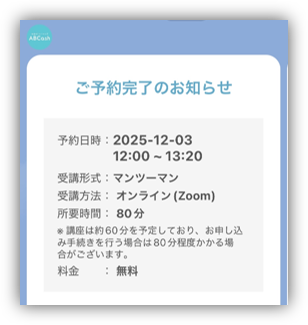 いきなりABCashを受講する前に、まずは60分の無料体験を受けてみるのがオススメです。