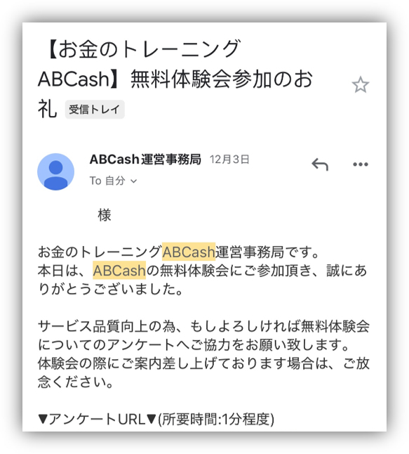 先着100名の本とアマギフは、申込時に登録したメールアドレスにABCashからお知らせが届くので、忘れないようにメールを確認してください。