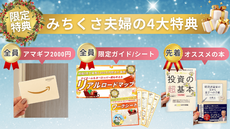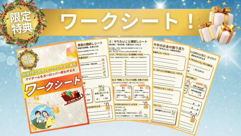 さらに、みちくさ夫婦から『結婚5年で資産2000万円を達成するまでにやったこと』をまとめた資料をプレゼントします!