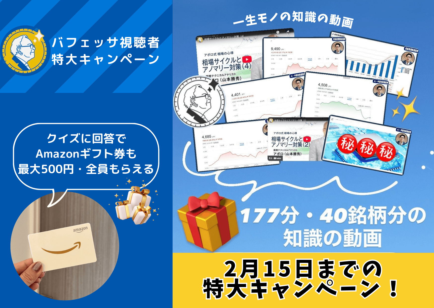 2月12日~15日までの期間限定キャンペーンでは、バフェッサ本編を最後まで視聴し、クイズとアンケートに回答すると、以下の3大特典が全員必ずもらえます🚀
