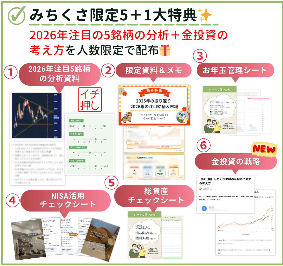 今回のキャンペーンでは、以下の6大特典が必ずもらえます🎁